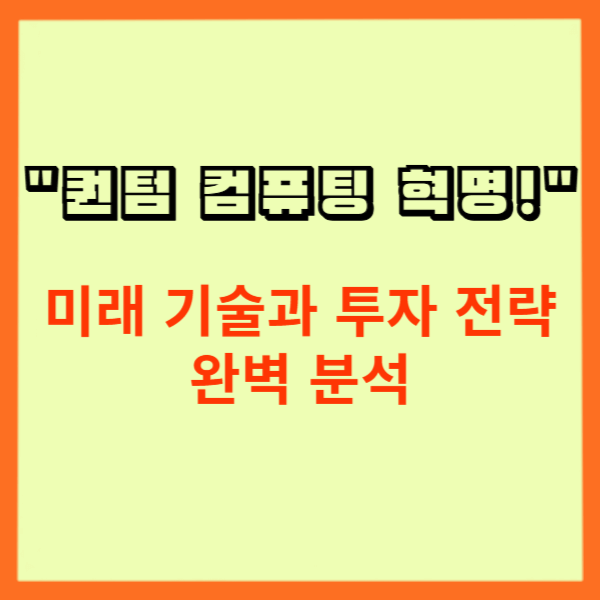 이제 퀀텀 컴퓨팅의 혁신과 투자 전략을 이해하고, 미래를 선점할 준비를 해보세요! 🚀